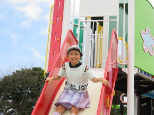 令和7年10月18日(土)にスマイルアクティブで果物狩りと公園遊びへ行ってきました!10月中旬となり、ぶどうがあるかなと不安でしたが、無事たくさんのぶどうと梨とキウイを収穫することが出来ました。子どもたちだけでなく、職員にとってもぶどう、梨、キウイ狩りは初めての体験となり、どれが甘いかなとみんなで話ながら選んで収穫する時間がとても楽しかったです。昼食はココスへ行ってきました。事前に食べたいメニューを選んでいましたが、実際にメニューを開くと迷うほど美味しそうなメニューがたくさんありました。子どもたちはお子様ランチを選び、大きな口で美味しそうに食べていました。量が多く、お腹がいっぱいと言っていた子どもたちですが、もちろんデザートは別腹です。みんなで注文したアイスはペロリと全員完食しました。公園遊びは城山公園へ行ってきました。大きな遊具に大興奮です。遊び場に到着すると早々に走り出し、思う存分遊びました。観覧車やゴーカートにも乗り、綺麗な景色も見ることができ、児童、職員共に大満足の1日アクティブでした。