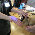 11月10日(月)に「食中毒と感染対策と手洗いについて」という議題で鹿児島ケミカル商会の東様にお越しいただき、ご講話頂きました。コロナやインフルエンザが流行る時期になり、このような機会をいただき感染症予防について改めて理解を深められたことは非常に良かったと思います。まず食中毒についてご講話頂き、そもそも食中毒とは食品や飲料を介して下痢、発熱、神経麻痺等の症状を引き起こし最悪の場合死に至ることもある危険な健康障害であることを改めて学びました。また食中毒の予防としてお話しいただいた、冷蔵庫内の棚割についての話が印象的でした。食材によって最近の種類が異なるため、細菌の少ない調理済みのものを1番上の段に置き、野菜や刺身といった生食用のものは真ん中の段、そして細菌数の多い生肉や卵は1番下の段に置くことが望ましいとの事でした。普段あまり意識せず冷蔵庫内の棚割りをしていたため、今後は注意して食中毒防止に繋げようと思いました。また最後には手洗いの仕方についてご講話頂き、実際に手を洗いどれだけ洗えているかその後確認していただきました。正しい洗い方をご教授頂き洗い残しやすい個所を伺った後でも、ほとんどの職員が洗い残しを指摘されていました。普段手を洗ったつもりになっていたことを知り、大変貴重な経験になりました。今後はより丁寧な手洗いを心掛け、児童にも同様の手洗いを呼びかけながら感染症予防に努めて行きたいと思います。